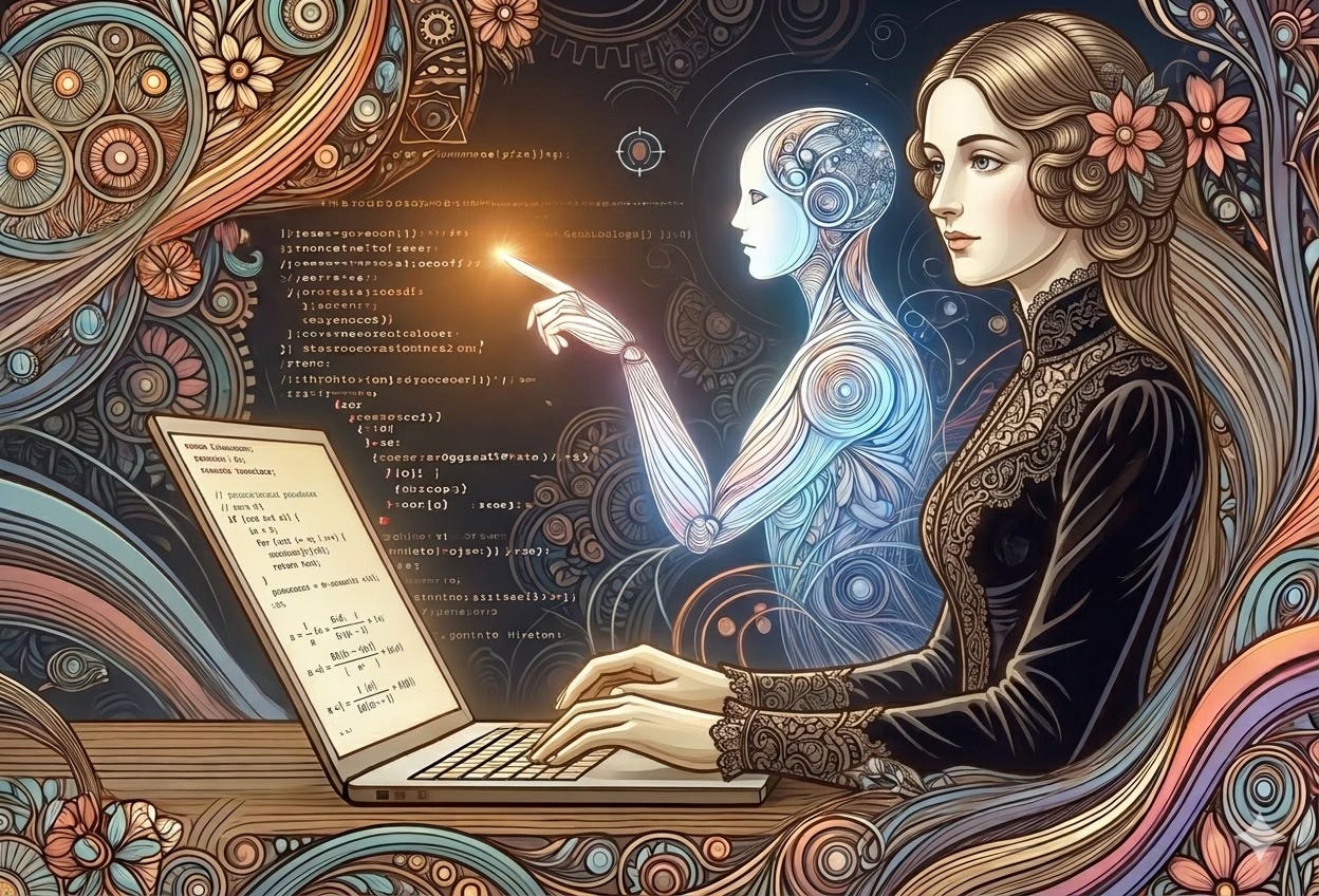 The first programmer was a writer. Ada Lovelace wrote the first algorithm for Babbage’s Analytical Engine in 1843—in prose, essentially. Annotations to a translation of an Italian paper, extended into something that described what a machine could do if someone told it what to mean. She was writing a specification. She was writing natural language instructions for a machine that didn’t fully exist yet. She never touched a compiler. There were no compilers. There was only language, precise and visionary, reaching toward a machine that would take another century to arrive. Lovelace was Lord Byron’s daughter, raised deliberately away from poetry and toward mathematics—and she still couldn’t separate them. She called it poetical science. The first programmer refused to accept that poetry and mathematics were different languages. She was right.